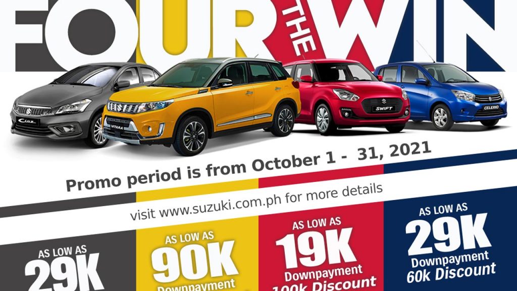 Suzuki’s October Four the Win promo offers low down-payment for Celerio, Ciaz, Vitara and Swift