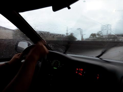 heading out on rainswept NLEX