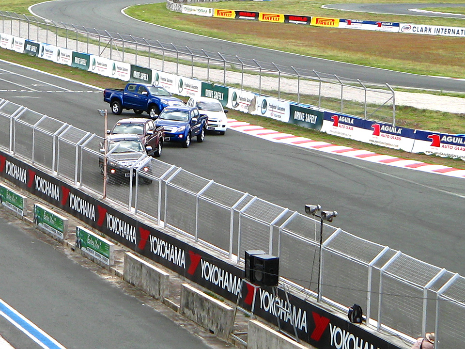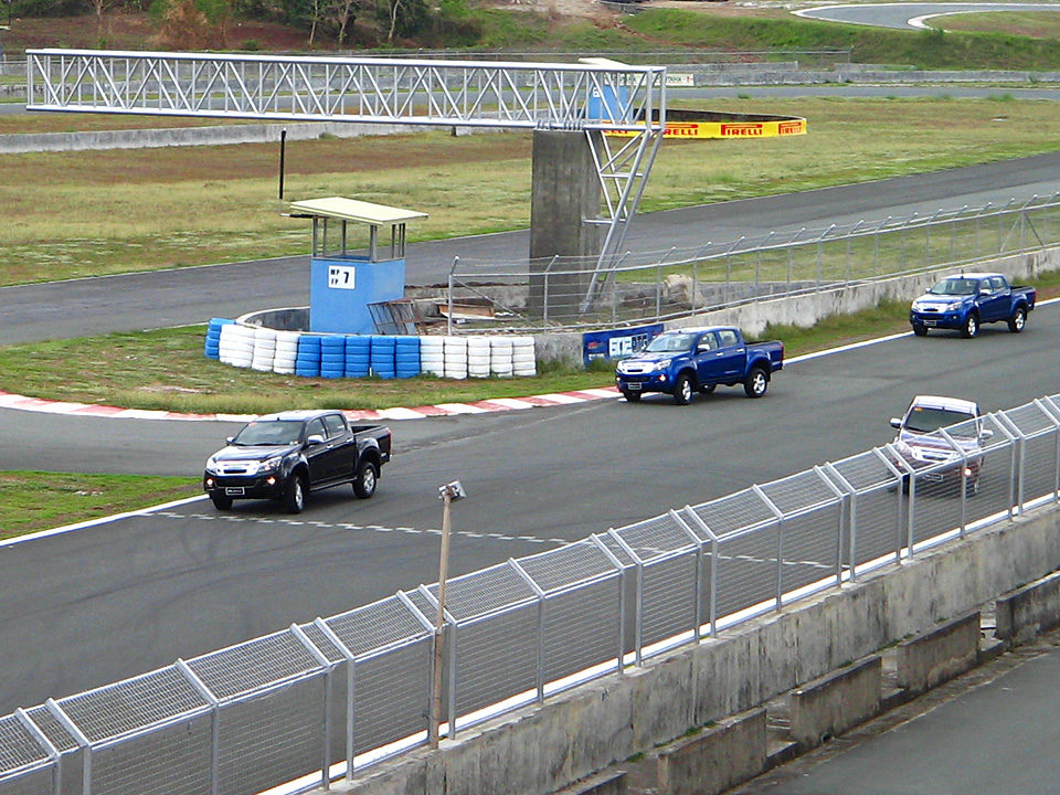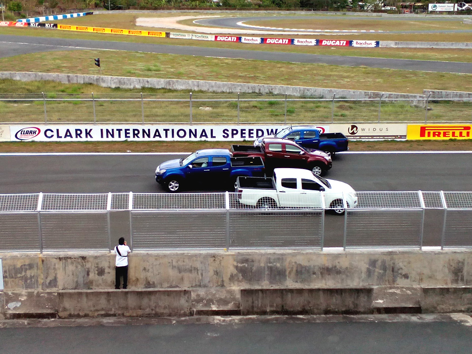Manila, 18 April 2015–Isuzu Philippines Corporation (IPC) has launched the D-Max line-up for 2015 at the Clark International Speedway with events that ran yesterday to today featuring a precision driving exhibition and on-track and rough-trail test drives to demonstrate the truck’s selling points both on and off the road. A team of precision drivers thrilled on-lookers with spirited formation driving on the main speedway’s turns and straightaways—an impressive sight when done in high-riding trucks. Afterwards, dealer and media representatives were given the chance to get behind the wheel on all four variants (4×2 or 4×4, AT or MT) in the D-Max’s top LS range.